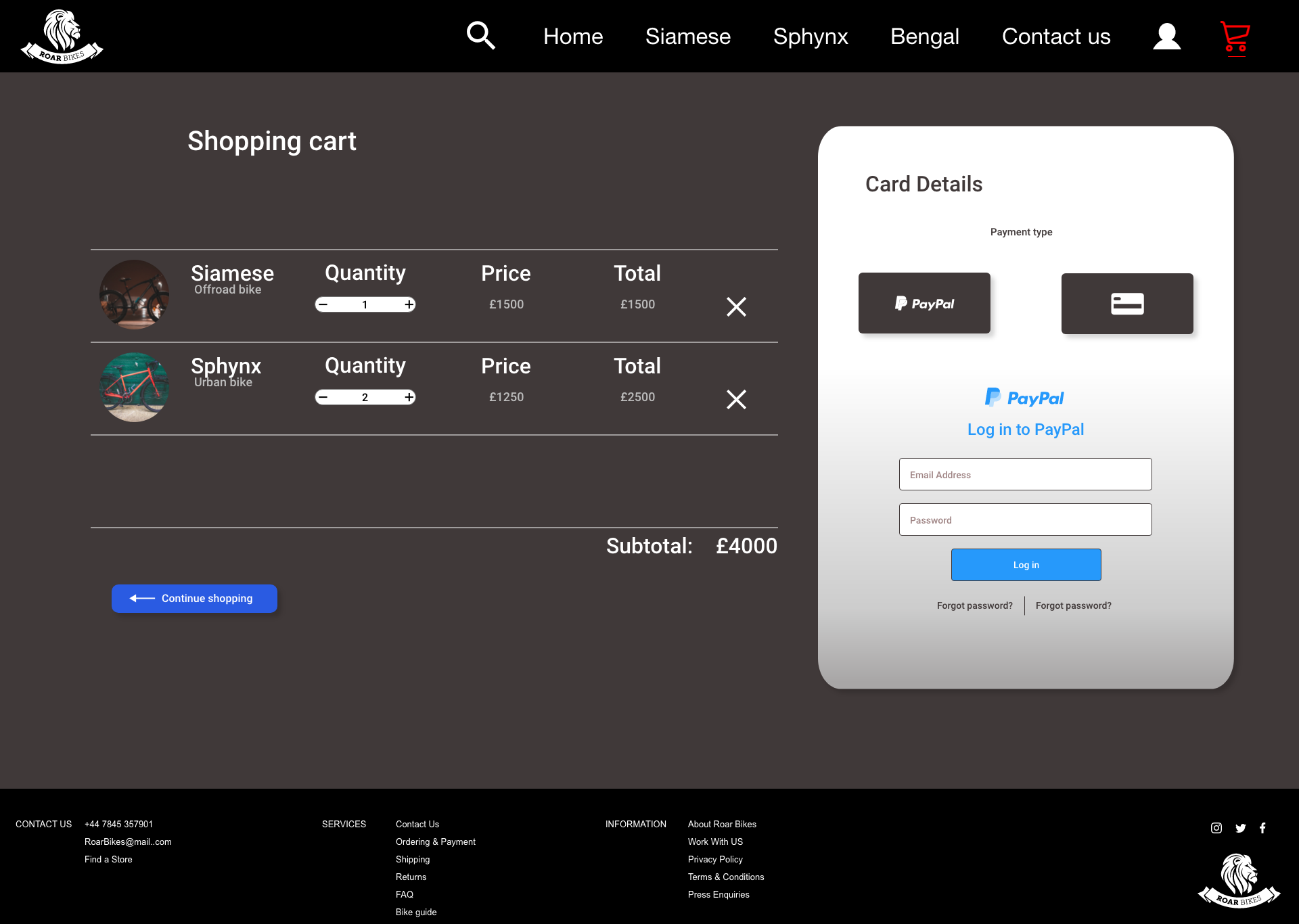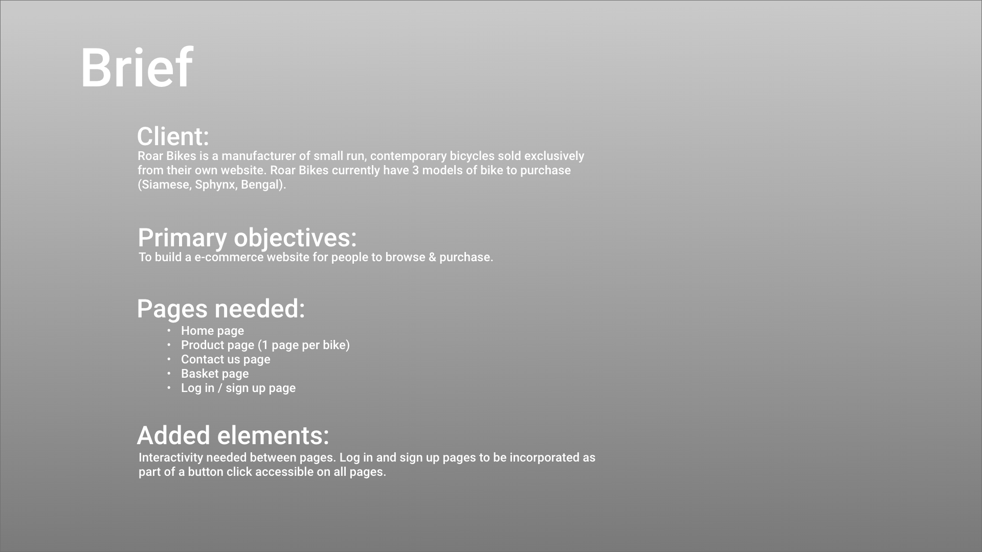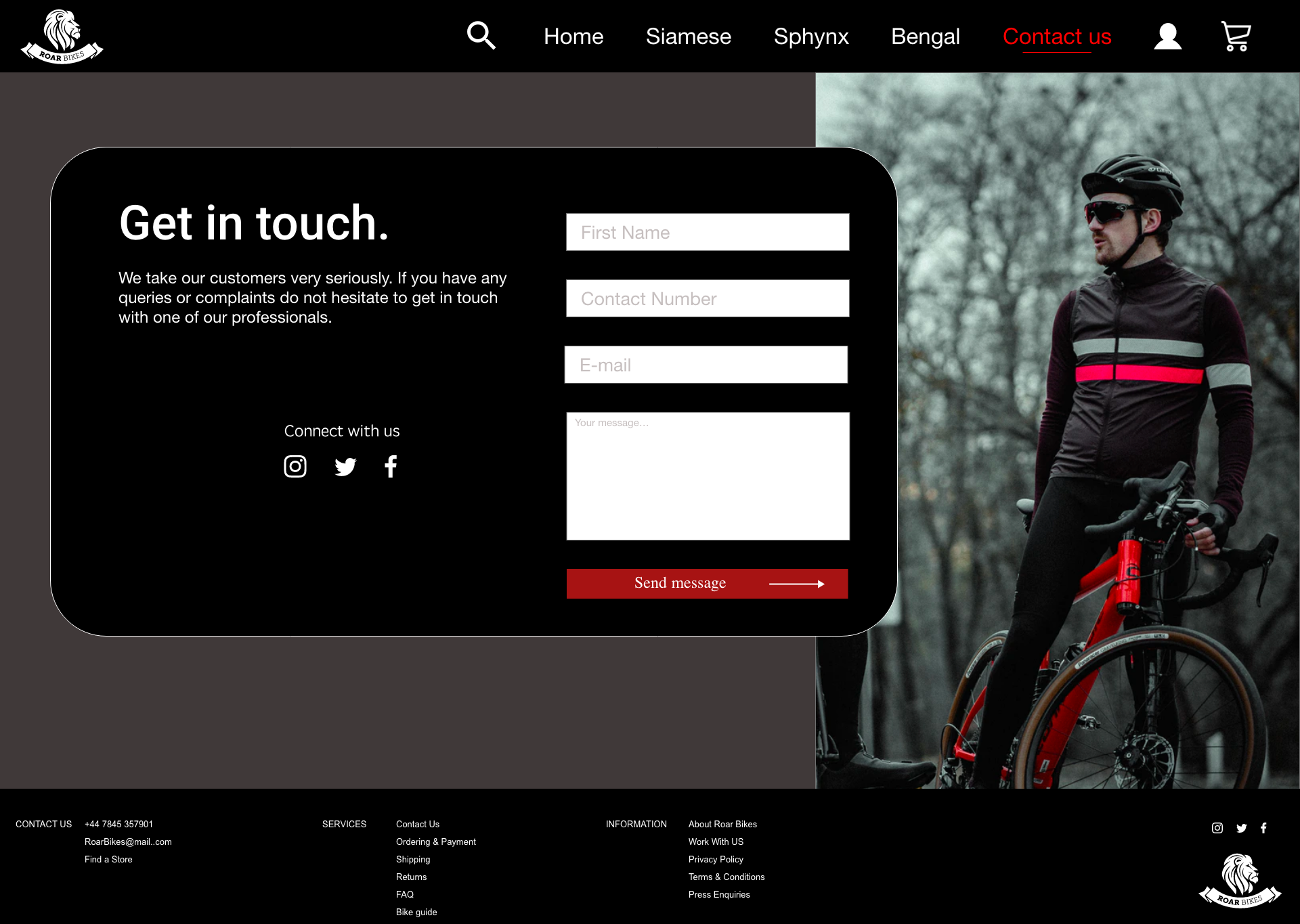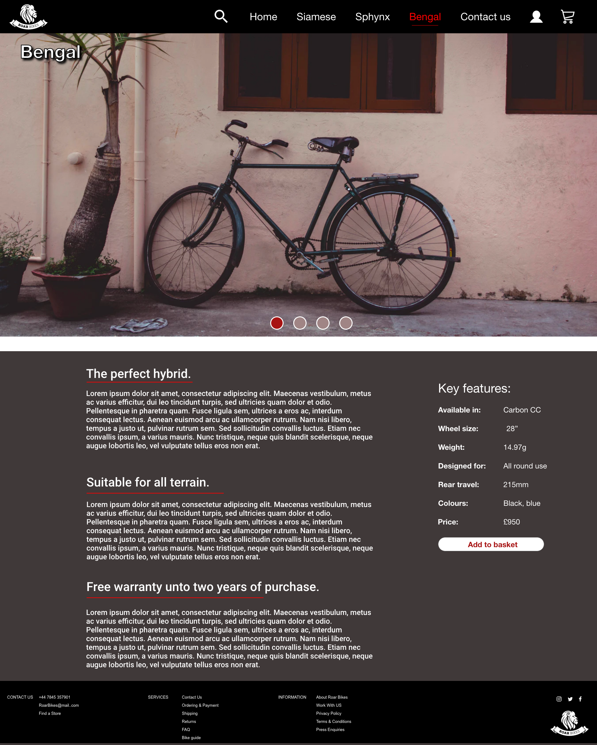 My second UX webpage design for fictional bike company Roar Bikes. This project utilised a range of skills within Adobe XD to create a professional looking webpage with interactive elements.